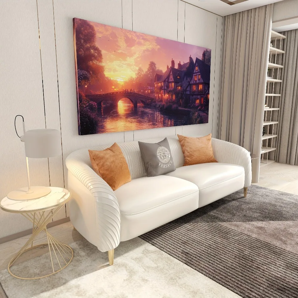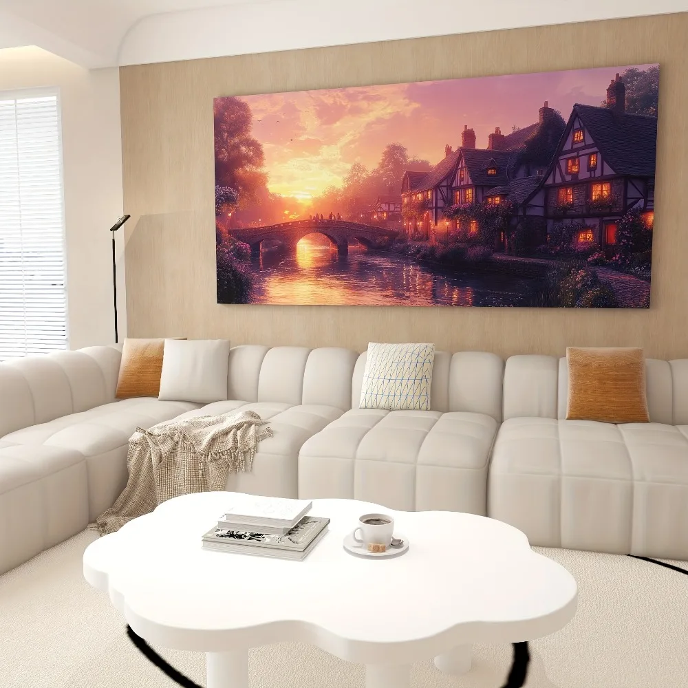 Dream in the countryside, records of a modest village, under old trees,1.5 inch thick pine solid wood frame, interior decoration